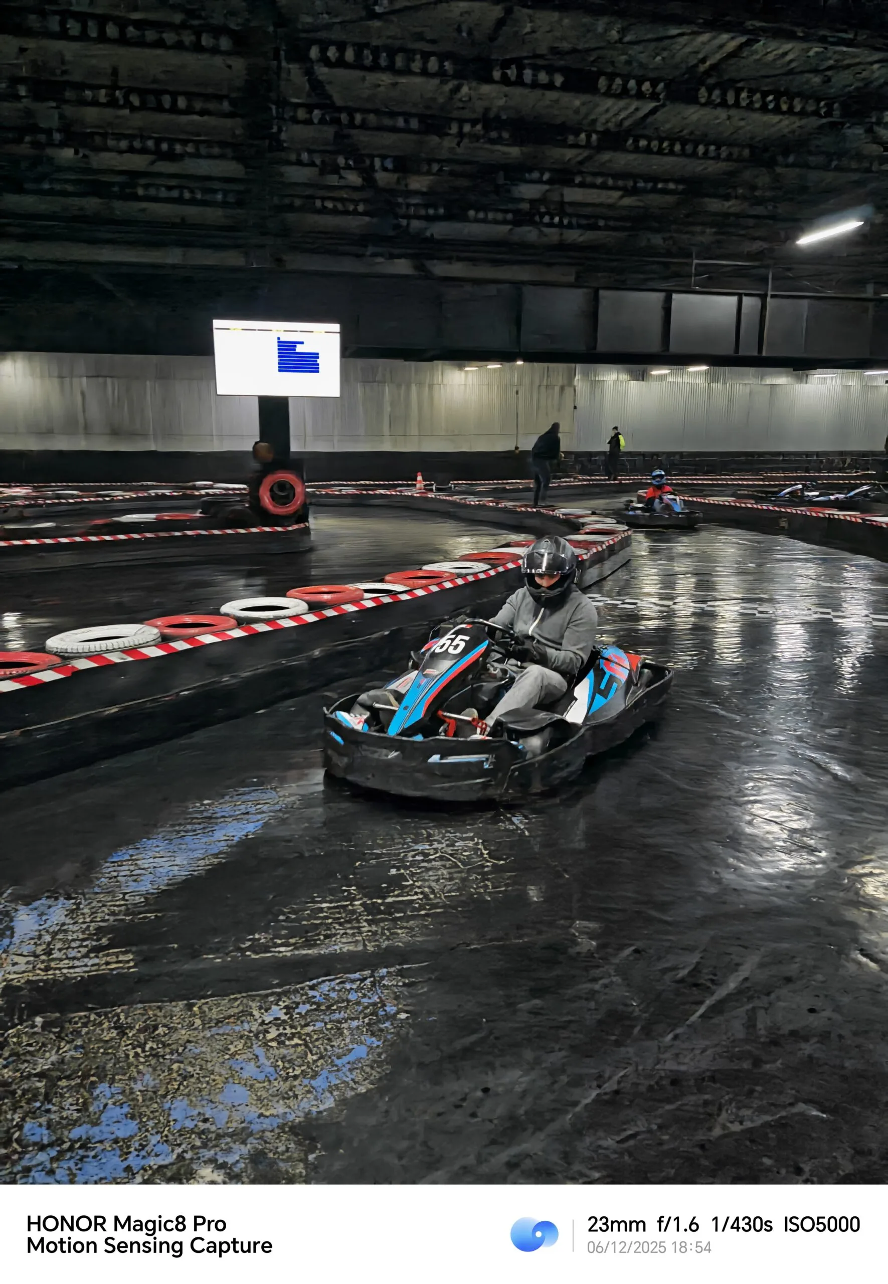Przydatną funkcją w aplikacji aparatu jest funkcja „Ruchome zdjęcie”, która ułatwia fotografowanie obiektów będących w ruchu. Ja wypróbowałam ją na torze gokartowym, ale muszę przyznać, iż gokarty to akurat obiekty poruszające się na tyle szybko, iż i tak musiałam zrobić wiele zdjęć, zanim udało mi się uchwycić takie godne pokazania tutaj. Potem przekonałam, iż nieco lepiej w tym środowisku sprawdziła się funkcja Wykrywania ruchu.