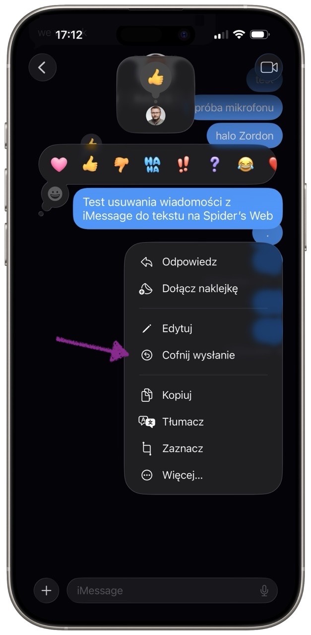 Oprócz tego trzeba pamiętać o tym, iż opcja cofania i edycji w ramach aplikacji Wiadomości na urządzeniach Apple’a dotyczy wiadomości wysłanych w ramach usługi iMessage, a nie SMS-ów czy wiadomości typu RCS. Zgodnie z zapowiedziami, iż zacznie obsługiwać ten standard w przyszłości, firma Tima Cooka wdrożyła go, co nieco uspokoiło nastroje w ramach zielono-niebieskiej wojny, ale niestety na obsługę tego standardu na iPhone’ach w Polsce przez cały czas czekamy…