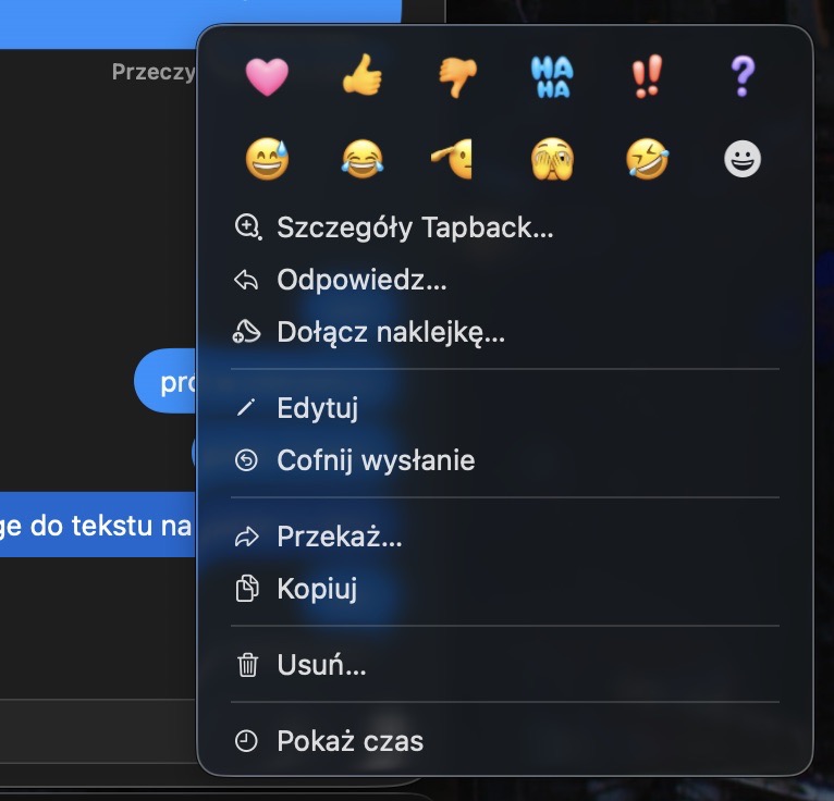 Jak cofnąć iMessage na komputerze Mac? Trzeba kliknąć na dymku prawym przyciskiem myszyJak cofnąć iMessage?