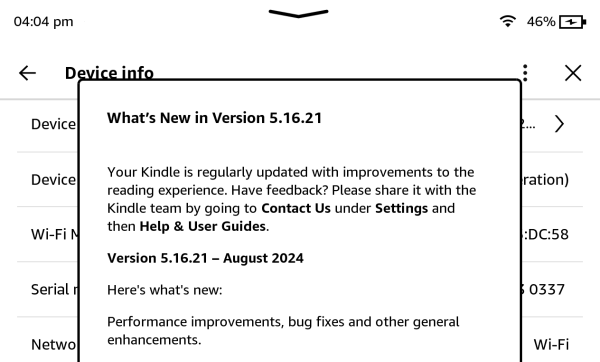 Mimo tego, iż numerek wersji systemu dla Kindle rośnie bardziej niż zwykle, to oficjalnie nie mamy nowych zmian.