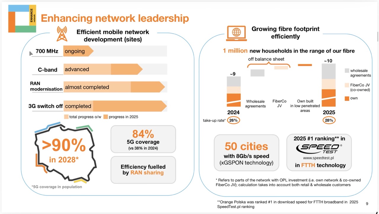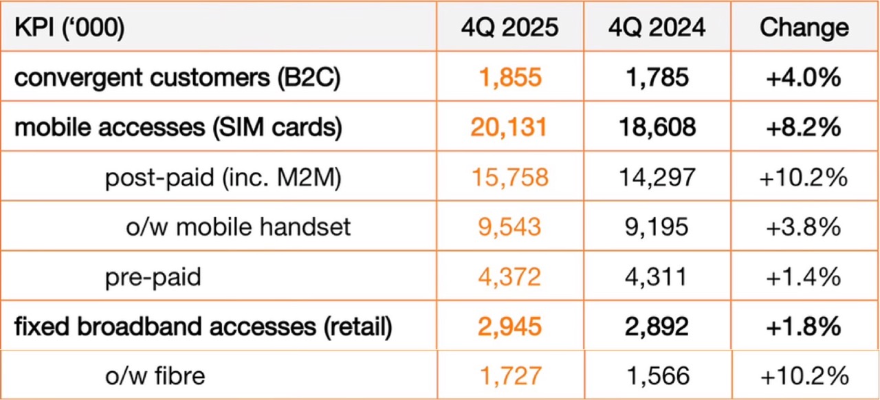 Obecnie z jego łączy może skorzystać już 10 mln gospodarstw domowych na terenie Polski, czyli o 1 mln więcej niż rok temu. We wzmocnieniu pozycji telekomu w tym obszarze pomogło przejęcie przez Orange firmy Nexera. Przychody z tytułu stałych łącz wynoszą w tej chwili 70,3 mln zł co stanowi wzrost 4,6 proc. r./r. w 4. kwartale 2025 r.