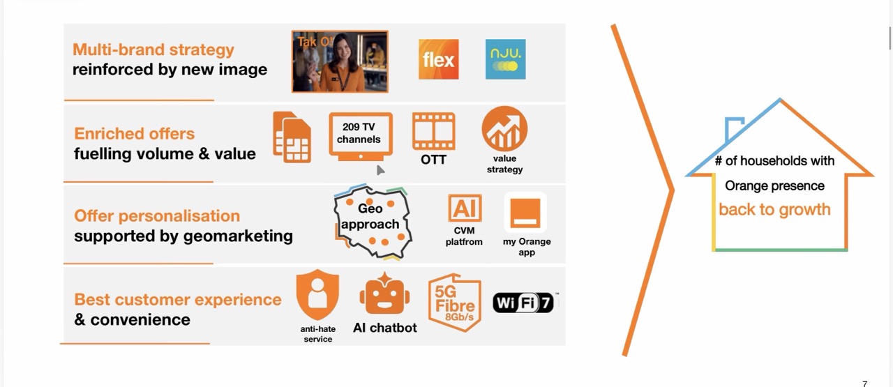 Operator uważa, iż wynika to z faktu, iż dopasował ofertę do oczekiwań odbiorców. Pomaga w tym obecność w portfolio dodatkowych marek takich jak nju czy Orange Flex. Do tego dochodzą usługi takie jak Multi SIM, oferta telewizyjna (209 kanałów) z OTT, obecność routera Funbox 10 z Wi-Fi 7 w ofercie itd.