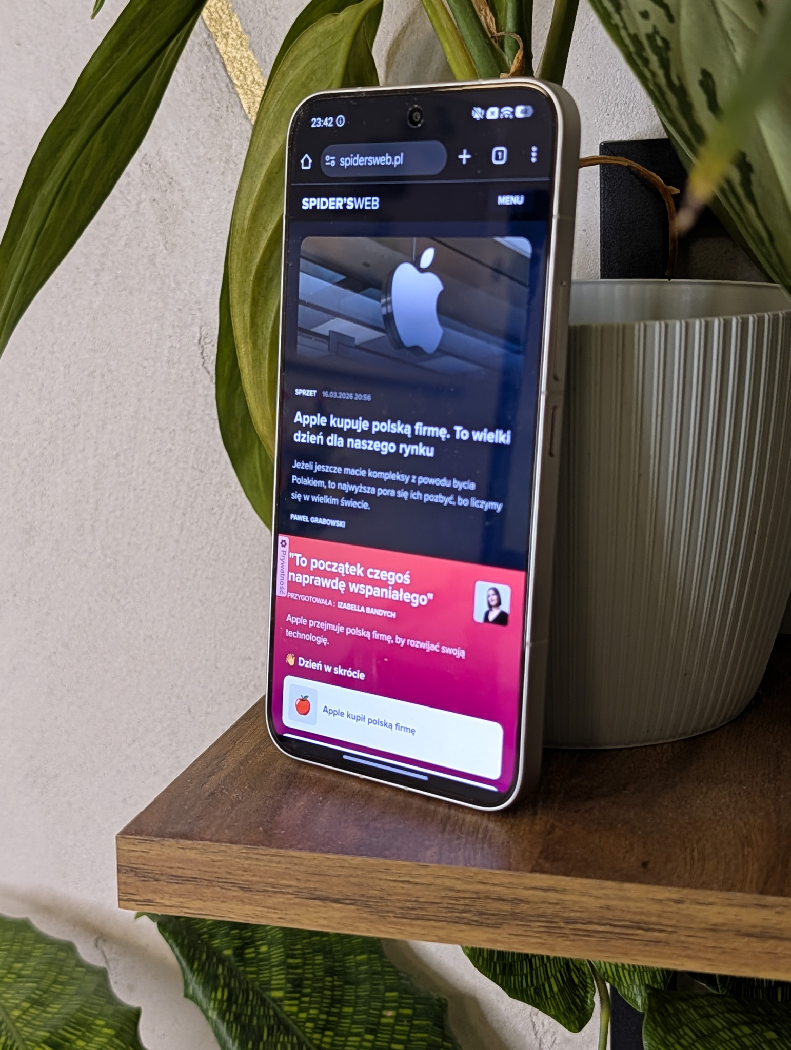 Ekran to AMOLED o rozdzielczości 1,5K i jasności do 3500 nitów. Jest ładny, czytelny i świetnie oddaje kolory. Bardzo dobrze konsumuje się treści, nie ma problemów z kątami widzenia, aż miło ogląda się filmy i gra.