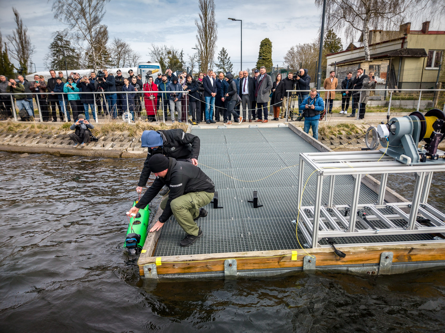 Prototypowa jednostka przeszła pełen scenariusz działań. Nie mówimy tu o sterylnych, laboratoryjnych testach w basenie, ale o rzuceniu sprzętu na głęboką wodę, i to dosłownie. Wydarzenie w Sobieszewie było pierwszym publicznym sprawdzianem w warunkach maksymalnie zbliżonych do rzeczywistych działań. Operatorzy najpierw zweryfikowali sprawność systemów łączności, a następnie manualnie zwodowali drona ze slipu.