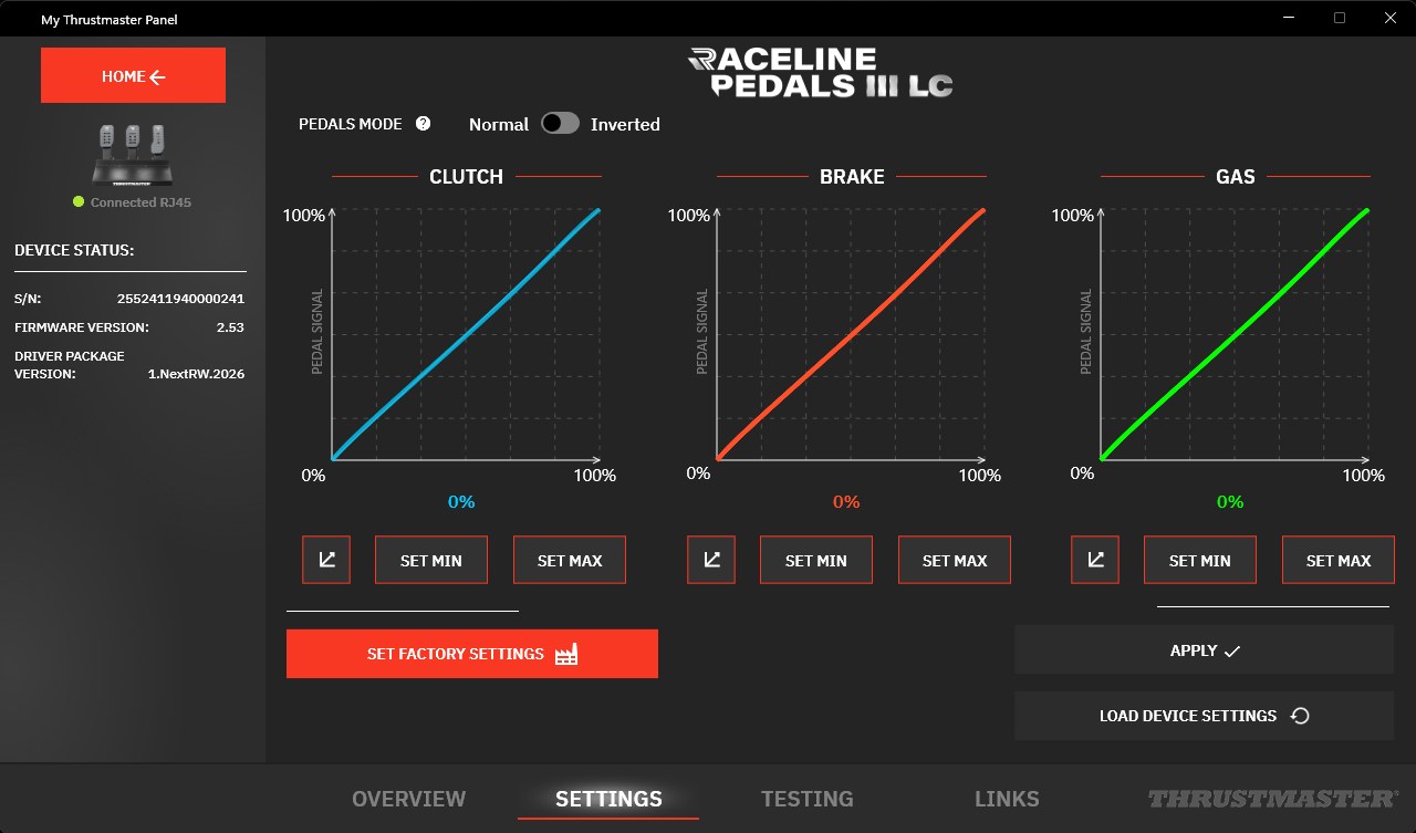 W panelu ustawień możesz regulować zakres działania każdego pedału, czyli tzw. martwą strefę. Oprócz tego zmienisz krzywą reakcji, co pozwala dostosować czułość. Dzięki temu możesz ustawić agresywne hamowanie lub bardziej liniową dynamikę.