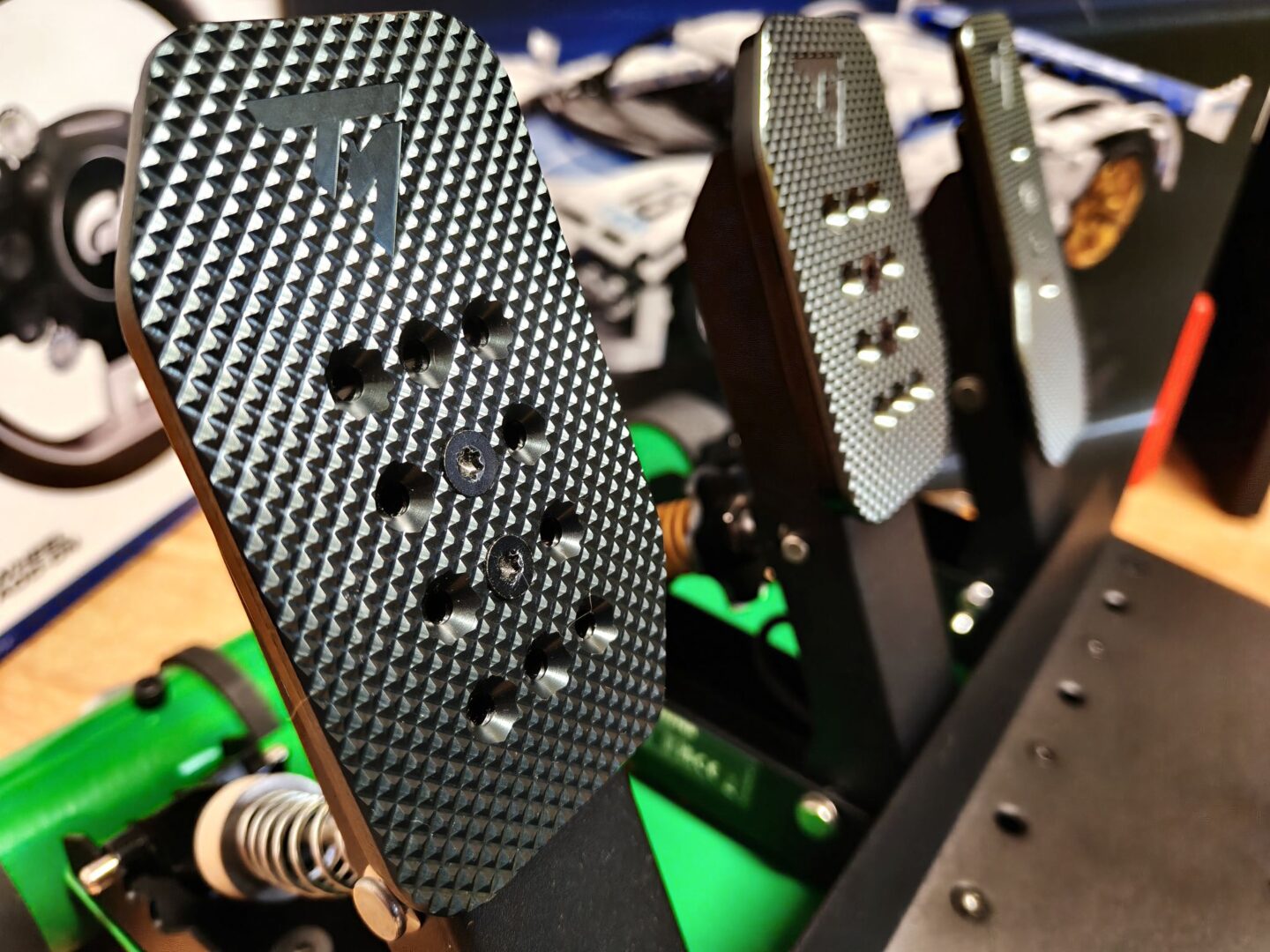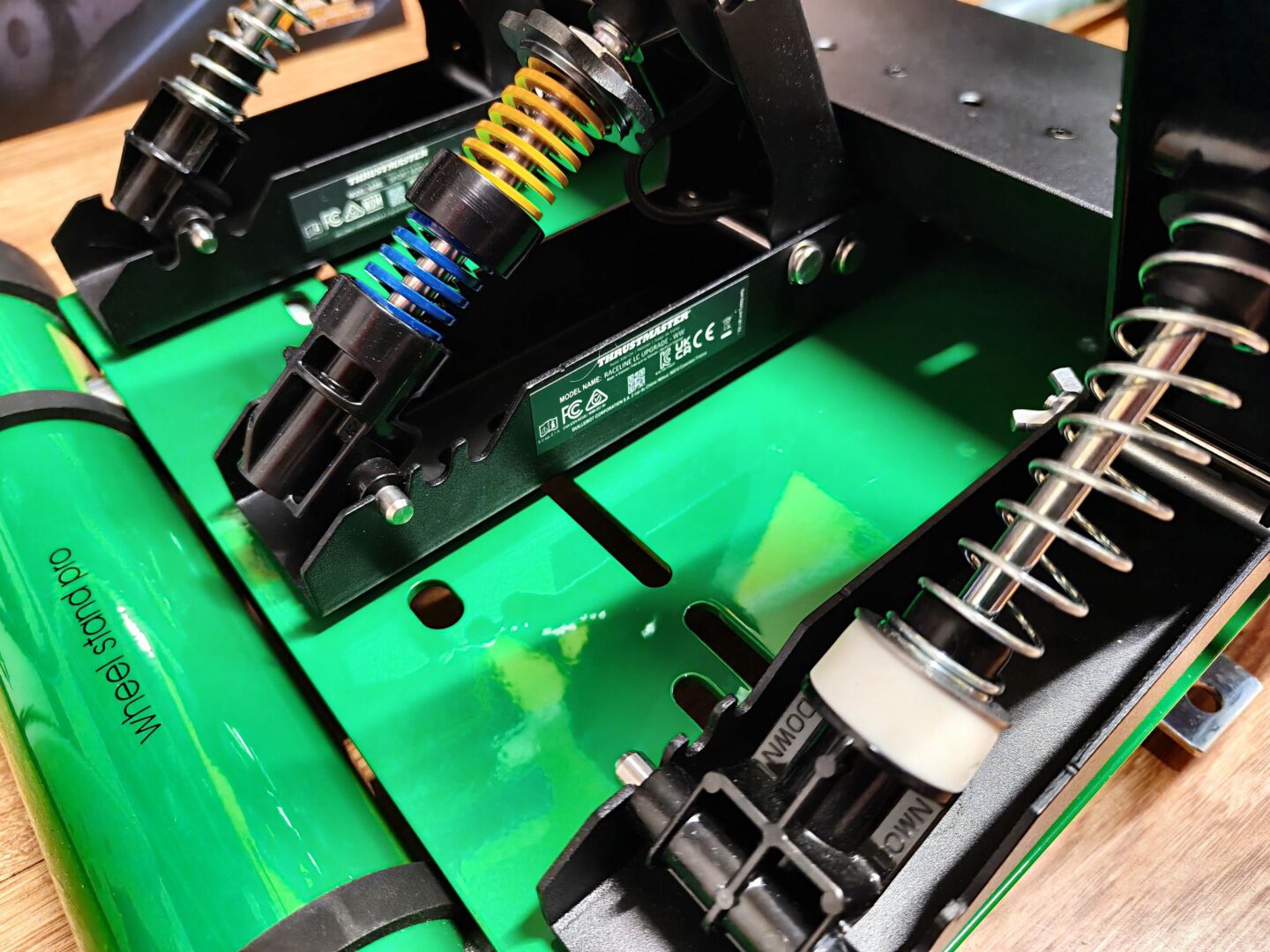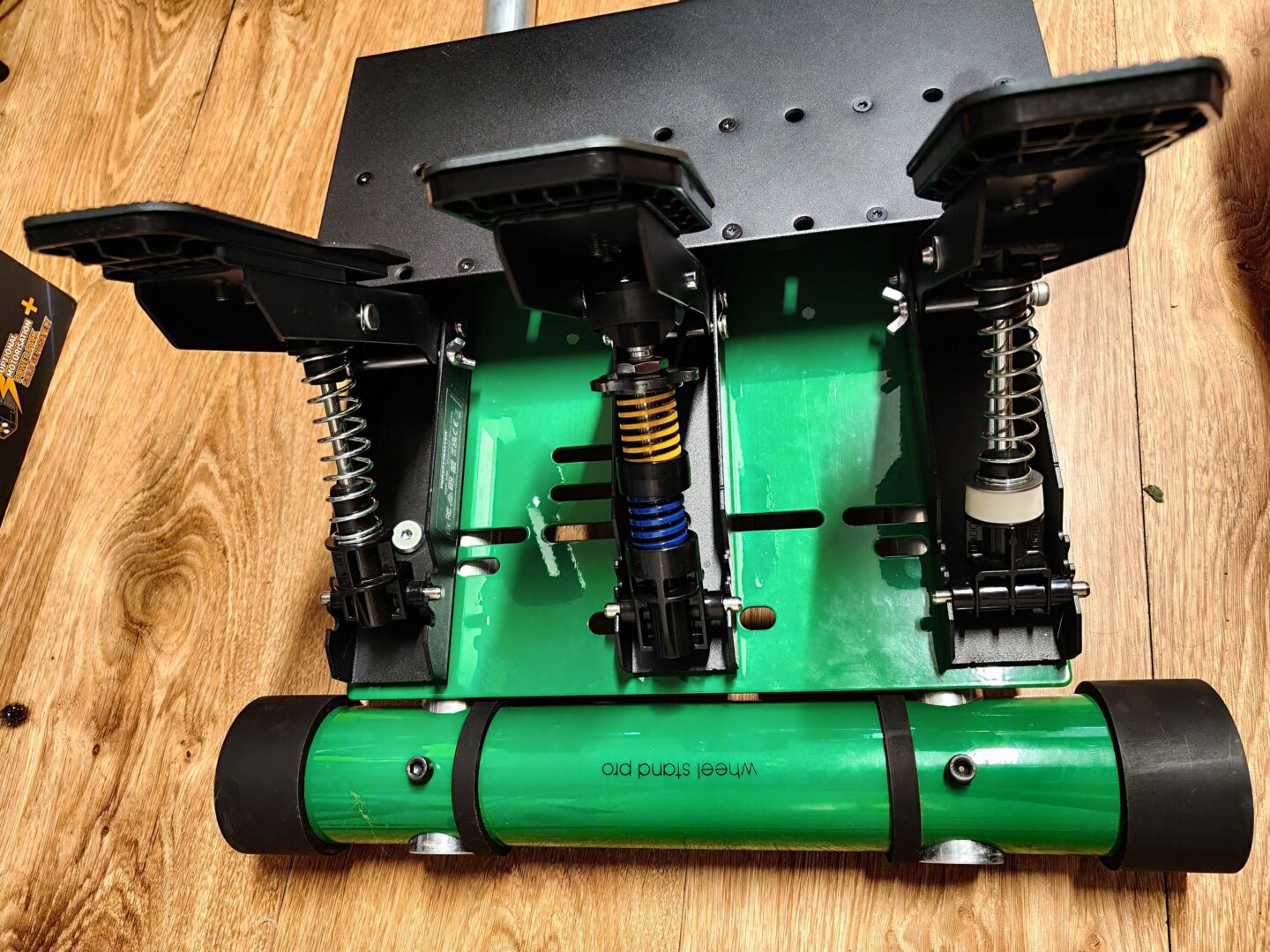 Po złożeniu zestaw robi bardzo dobre wrażenie. Metalowe komponenty dominują, a całość wydaje się znacznie bardziej „pro” niż podstawowy komplet. Do tego pedał hamulca stawia wyraźny opór już od pierwszego naciśnięcia. To jednak dopiero początek, ponieważ prawdziwa magia zaczyna się przy regulacji.