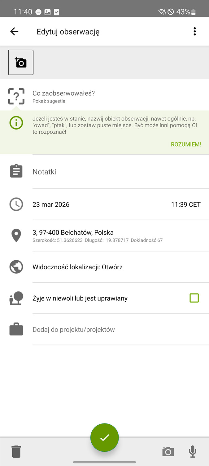 Interfejs zgłaszania obserwacji w iNaturalistW kolejnym kroku do akcji wkracza społeczność, która pomaga doprecyzować oznaczenie – często do poziomu konkretnego gatunku. jeżeli kilka osób zgodzi się co do identyfikacji, obserwacja zyskuje status wiarygodnej i trafia do szerszego obiegu danych naukowych. Równolegle użytkownik może przeglądać obserwacje innych, uczyć się rozpoznawania gatunków i śledzić własne postępy, co sprawia, iż aplikacja działa jednocześnie jak narzędzie, baza wiedzy i forma angażującej aktywności w terenie.