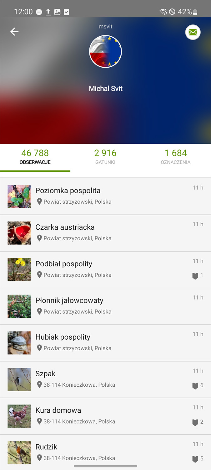 Przykładowy profil użytkownika w aplikacji iNaturalistAplikację iNaturalist pobierzesz ze sklepu Google Play i ze sklepu App Store. Możesz także odwiedzić stronę internetową projektu, która zawiera interaktywną mapę obserwacji.