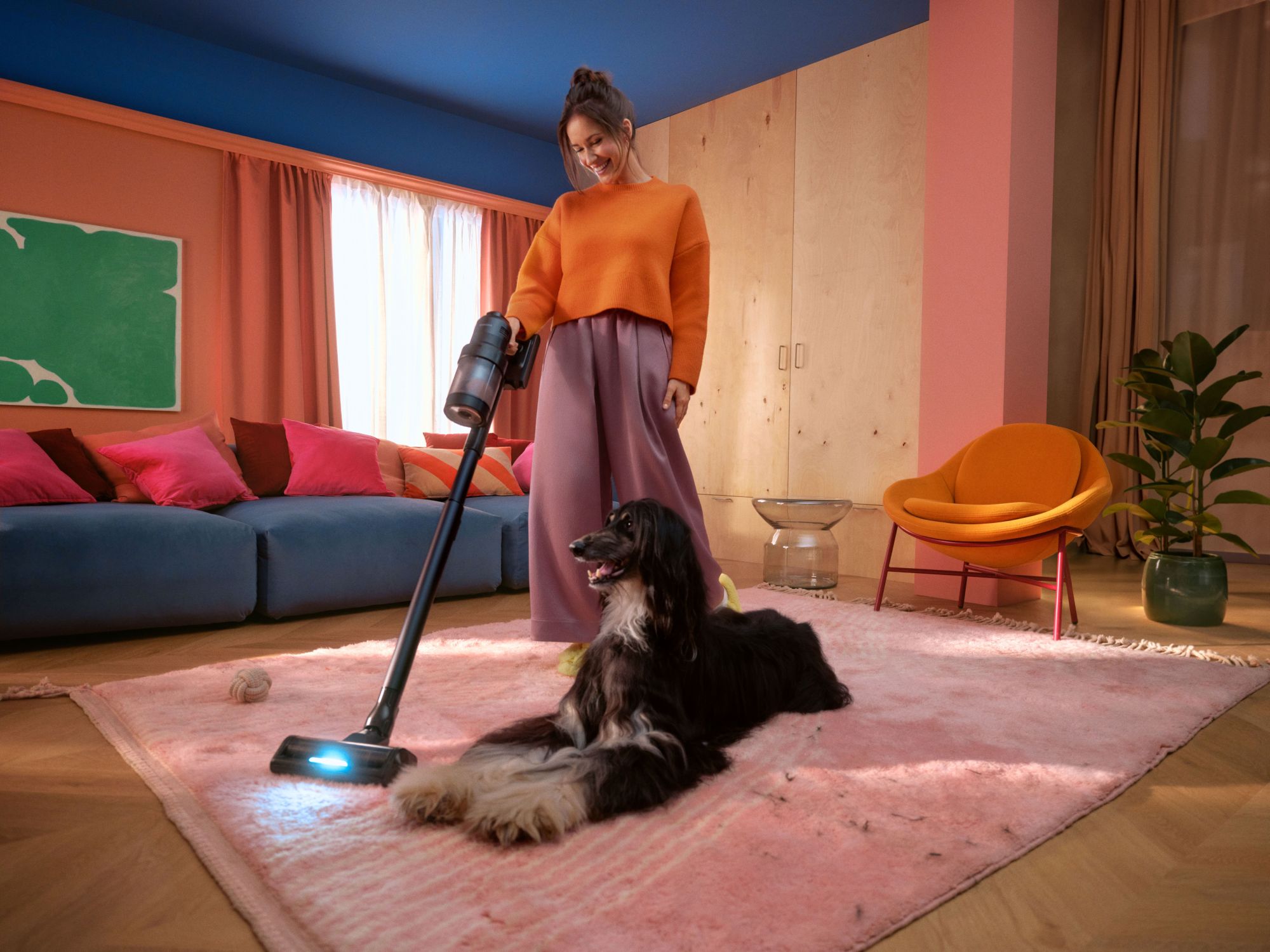 Drugi problem – i dla wielu może być to wada dyskwalifikująca – to notoryczne i obfite wplątywanie się włosów oraz sierści. Producent w swoich materiałach ilustruje ten model w otoczeniu długowłosych zwierzaków (patrz zdjęcia), jednak z długimi włosami ten sprzęt nie najlepiej sobie radzi. Problem dotyczy obu głównych elektroszczotek, a także turboszczotki do tapicerki. Konieczność regularnego, manualnego wyciągania splątanych włosów z rolek jest uciążliwa i stoi w sprzeczności z filozofią produktu, który miał maksymalnie ułatwiać życie. Dla właścicieli zwierząt i osób z długimi włosami to najważniejszy minus, ale – i tu ważne zastrzeżenie – nie znam odkurzacza tej kategorii (z rolkowymi elektroszczotkami), który radziłby sobie z takim problemem w sposób absolutnie bezkompromisowy. Klasyczne, mocne odkurzacze przewodowe, bez żadnych rolek, tylko z surową mocą zasysania brudu, pozostają w tym zakresie bezkonkurencyjne.
