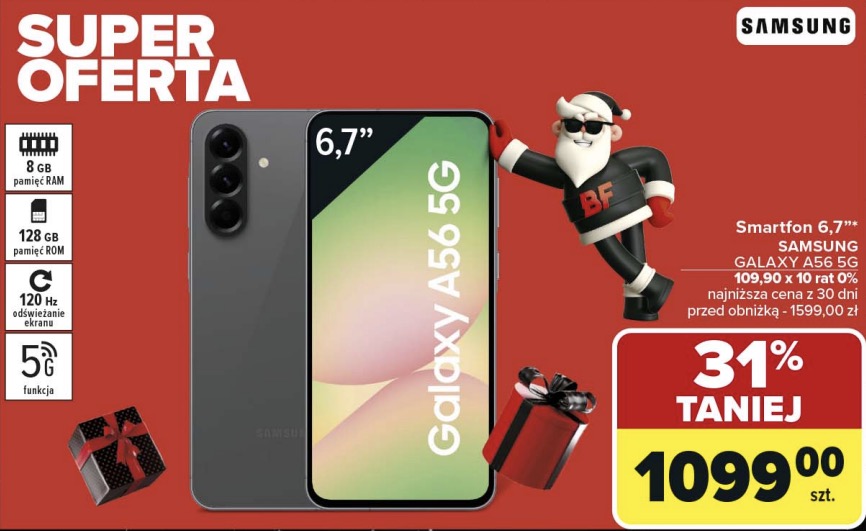 Oferta jest dostępna w sklepach Carrefour. telefon kupicie jednak wyłącznie w stacjonarnych punktach sprzedaży – trzeba będzie wybrać się do najbliższego sklepu tej sieci. Dla Samsunga Galaxy A56 w tej cenie zdecydowanie warto. Lepszego telefonu w podobnej kwocie nie kupicie.