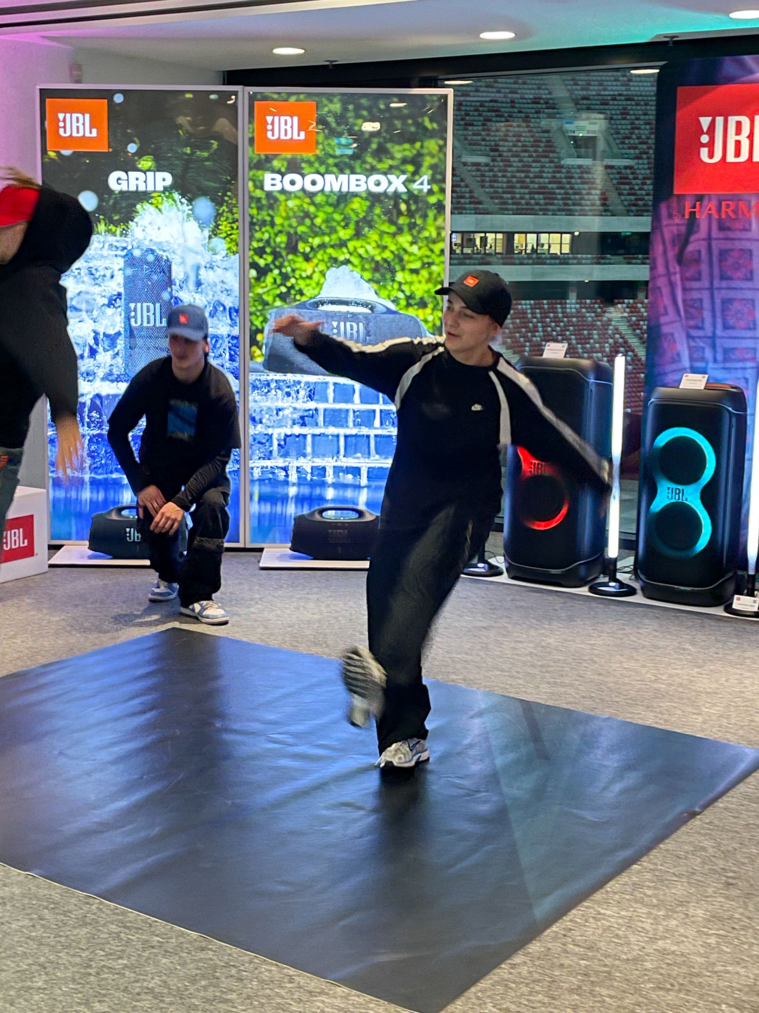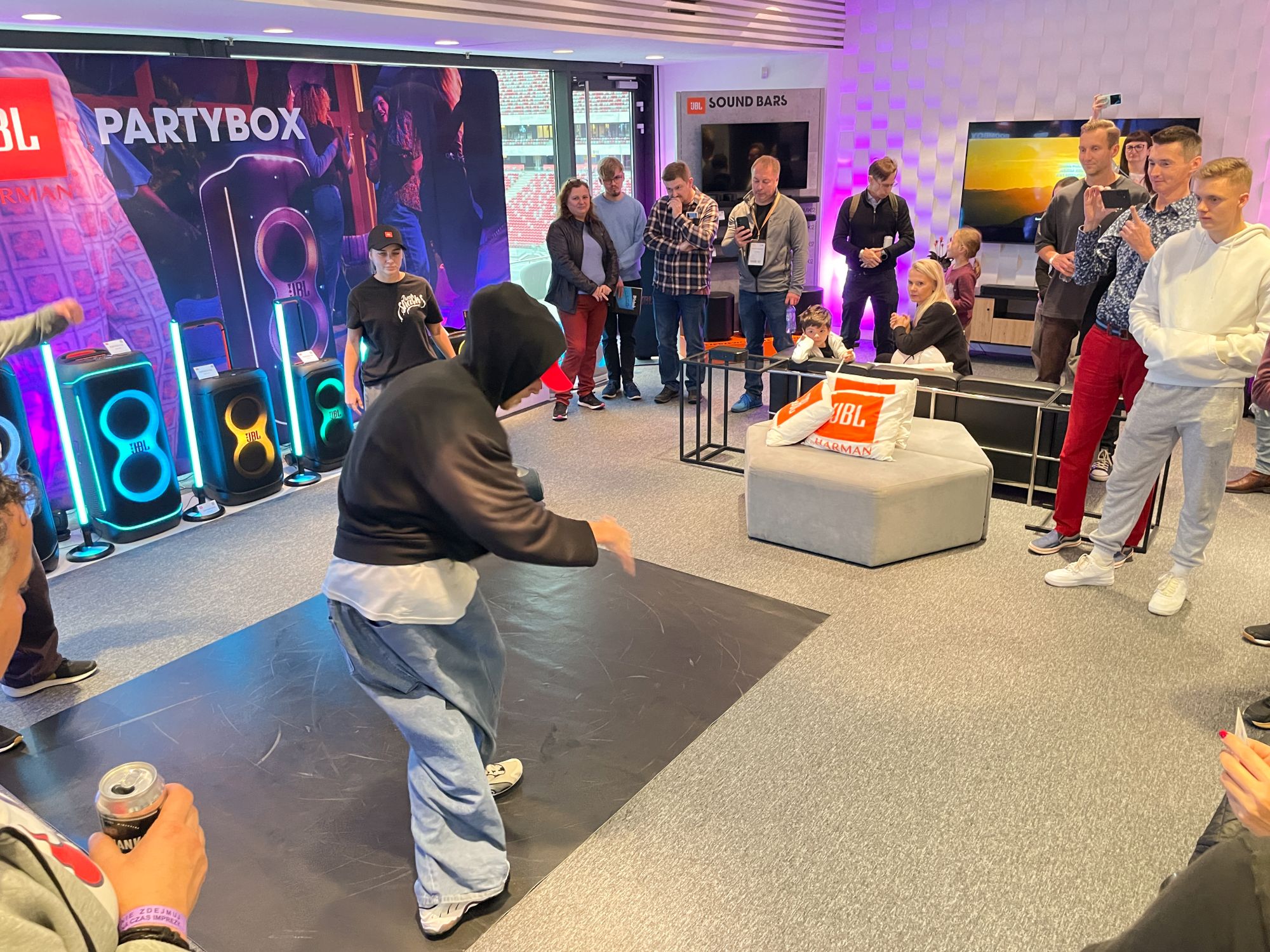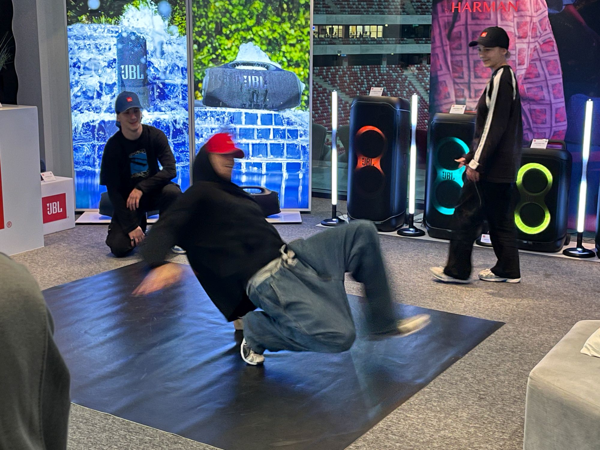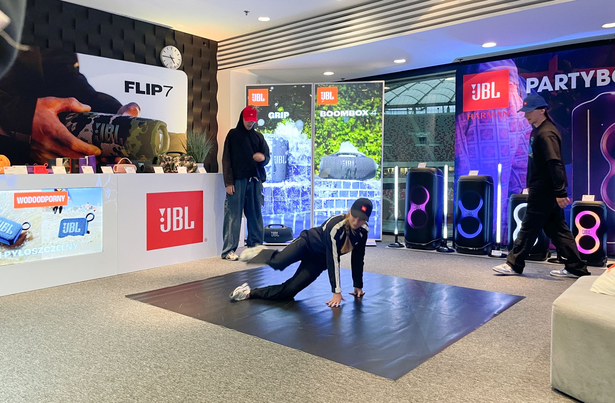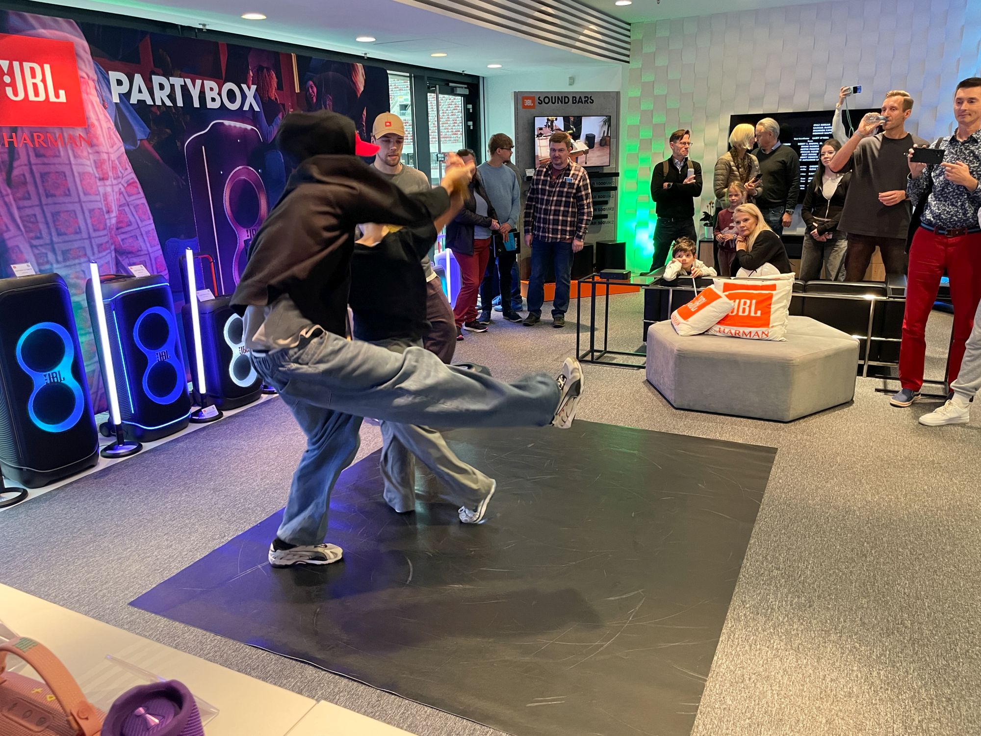 W trakcie imprezy brzmieniom generowanym przez sprzęt JBL towarzyszyły pokazy taneczne, było zatem nie tylko czego posłuchać, ale też można było podziwiać zwinność artystów.