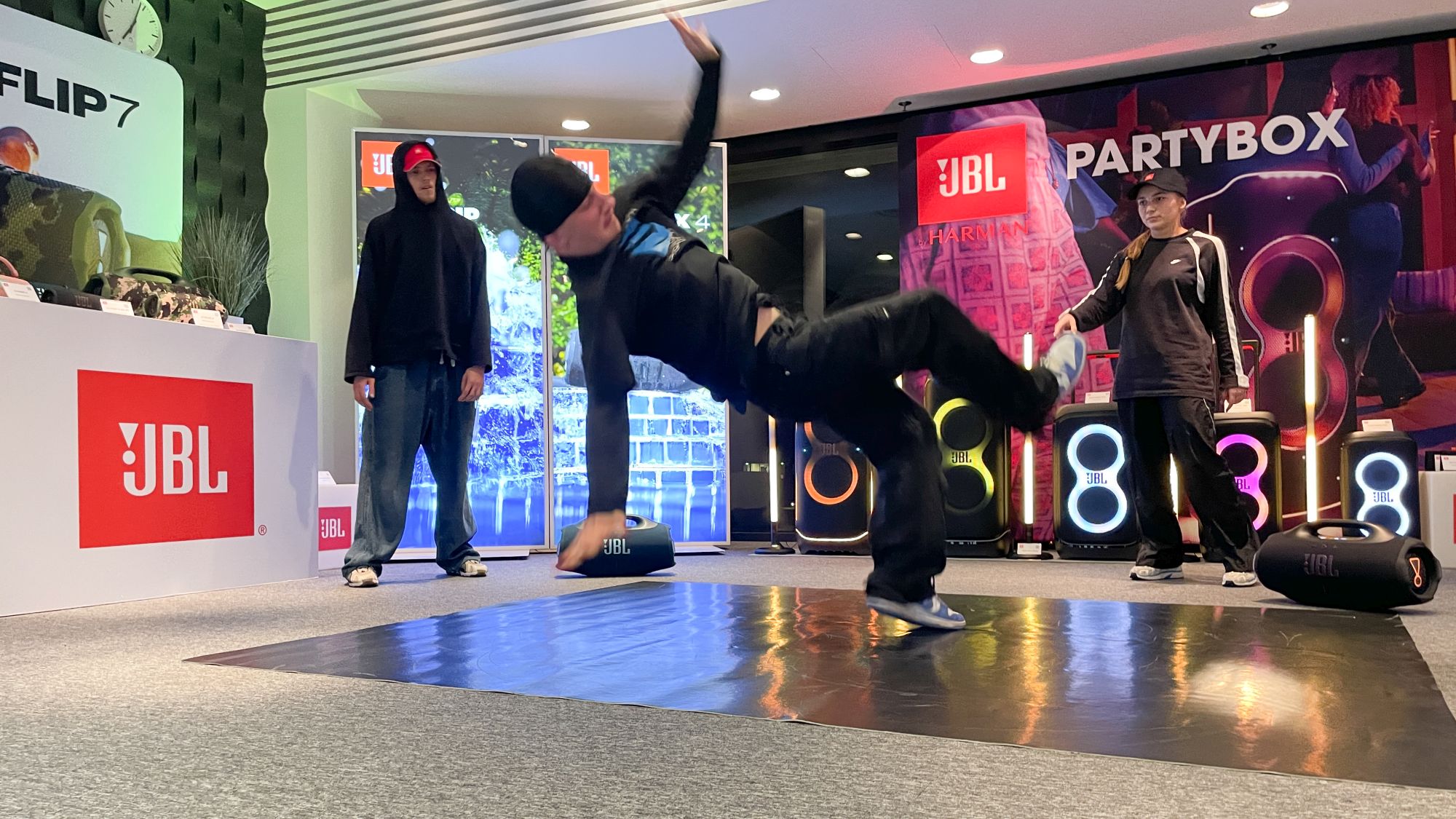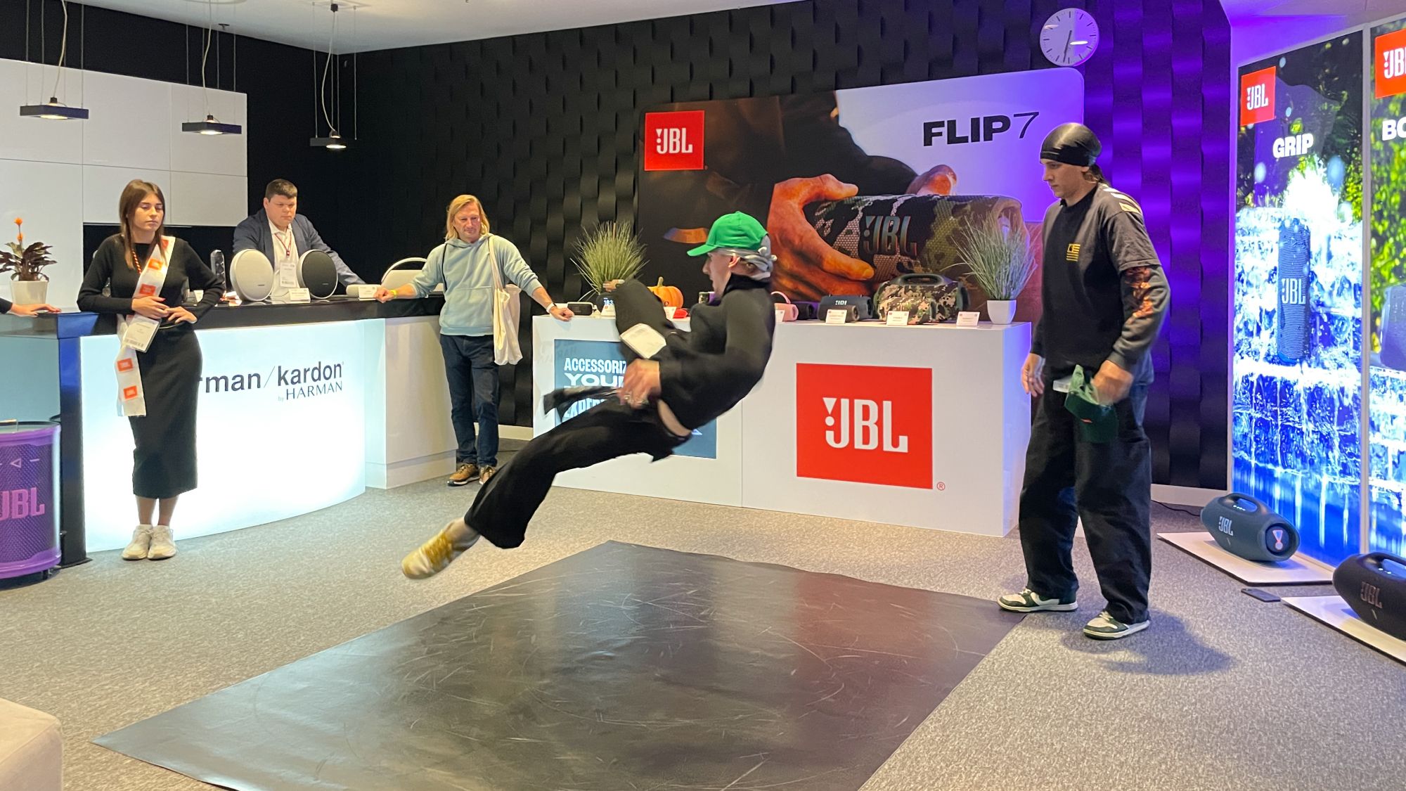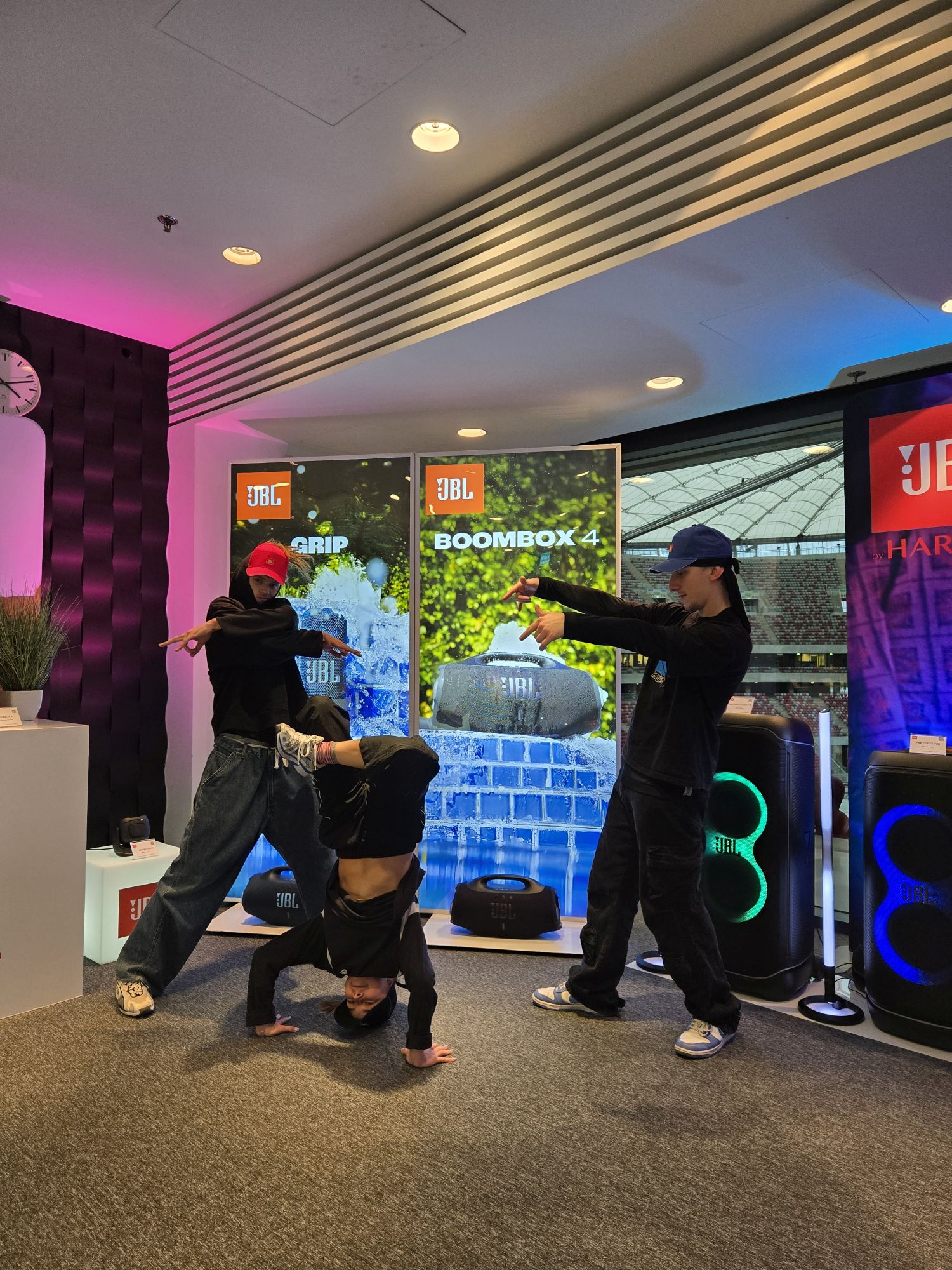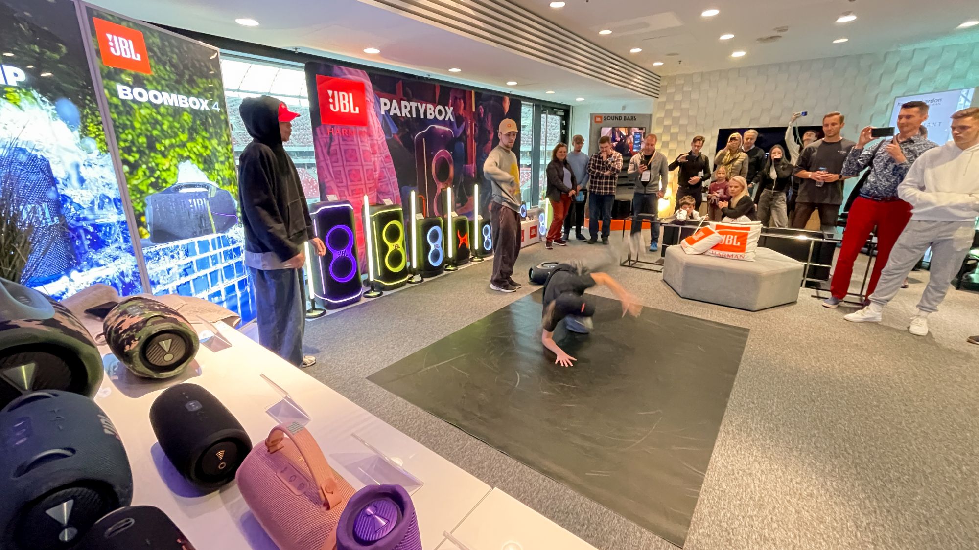 W trakcie imprezy brzmieniom generowanym przez sprzęt JBL towarzyszyły pokazy taneczne, było zatem nie tylko czego posłuchać, ale też można było podziwiać zwinność artystów.