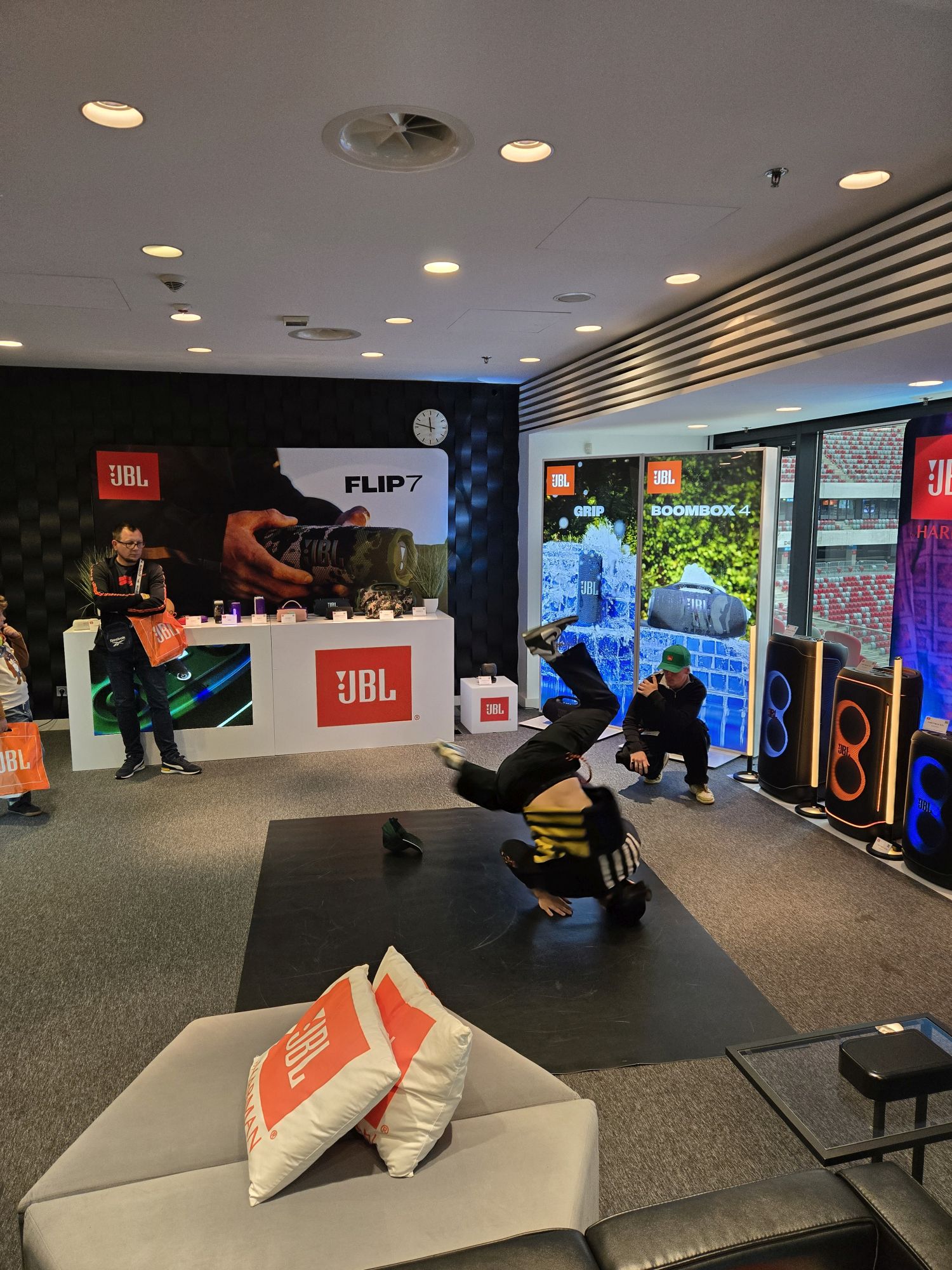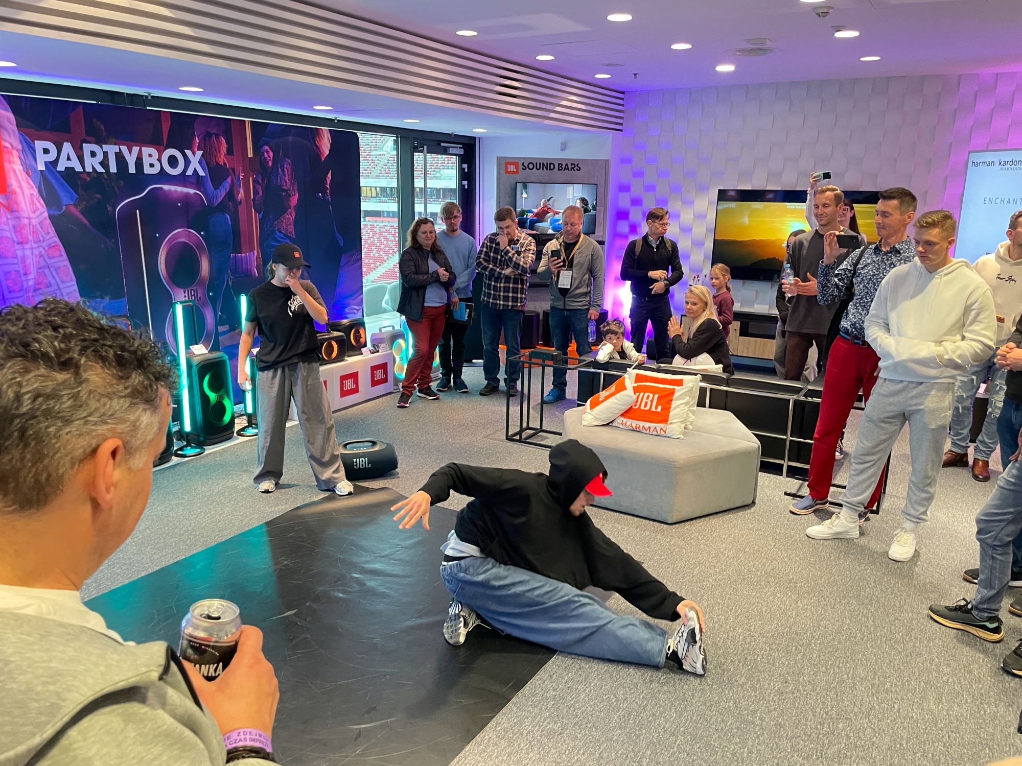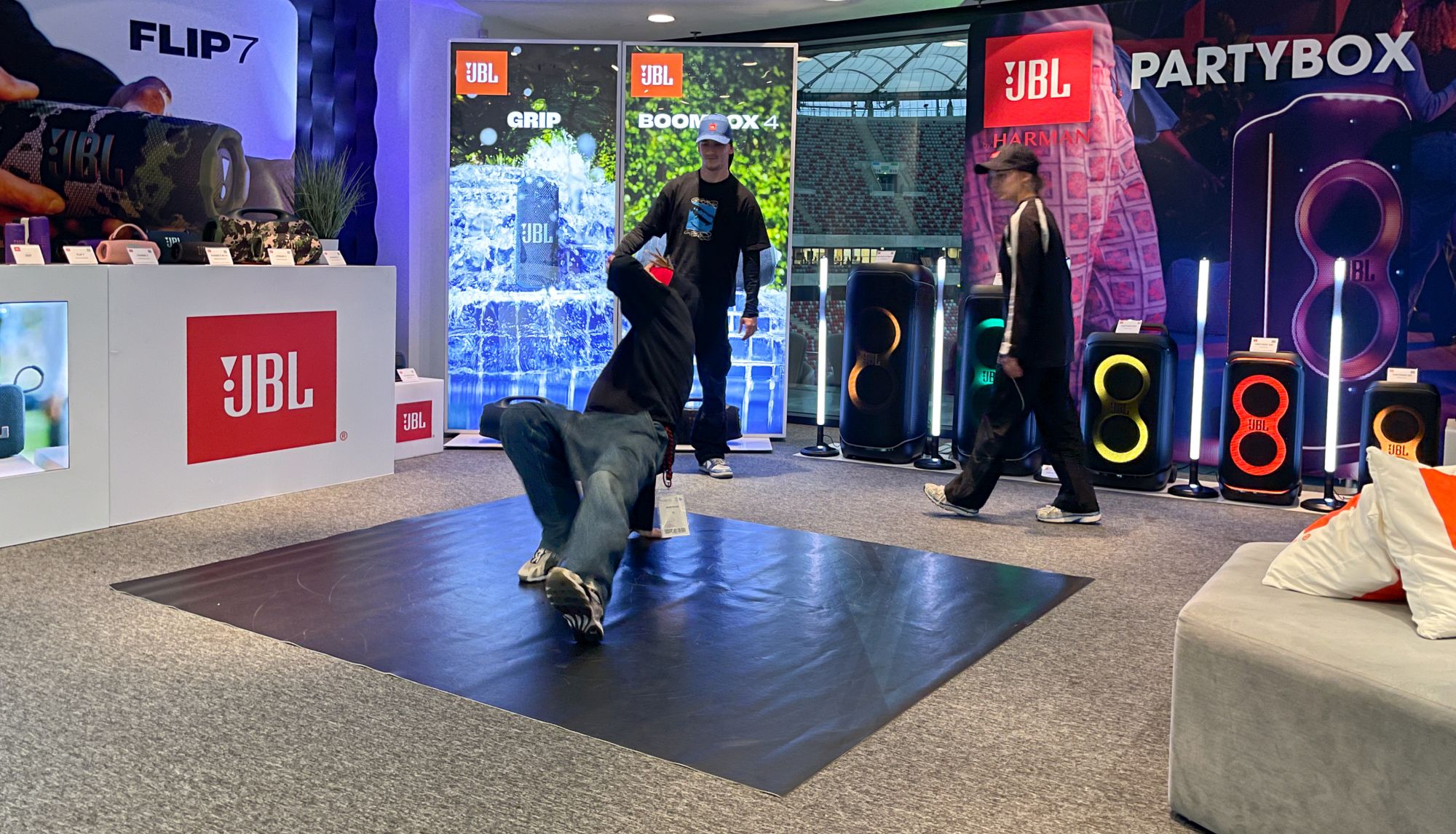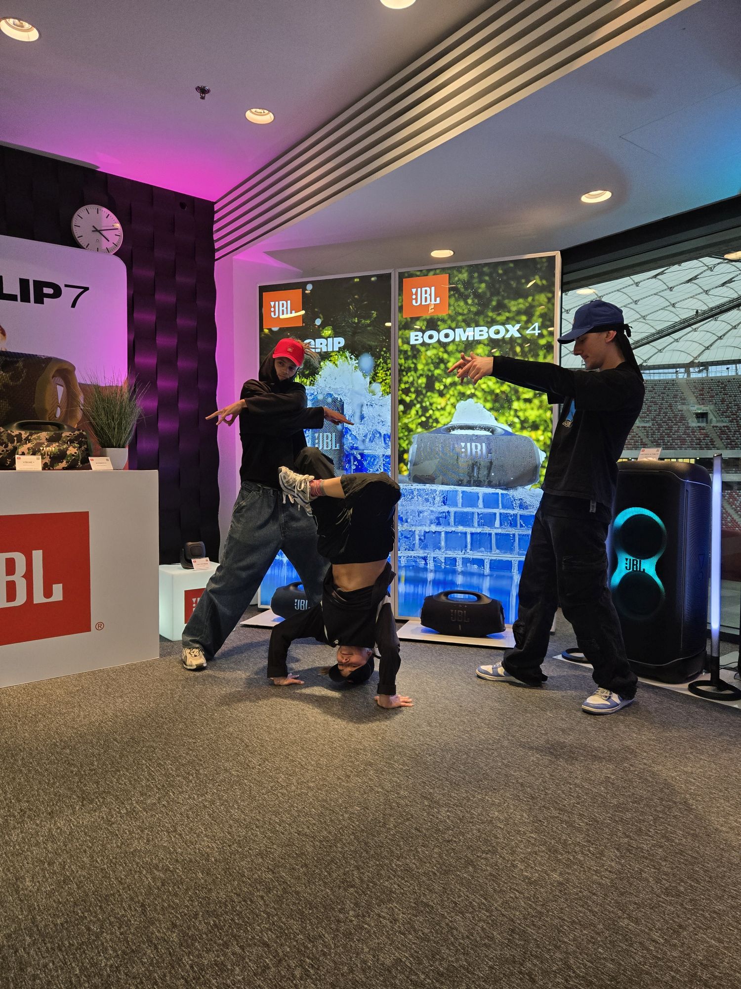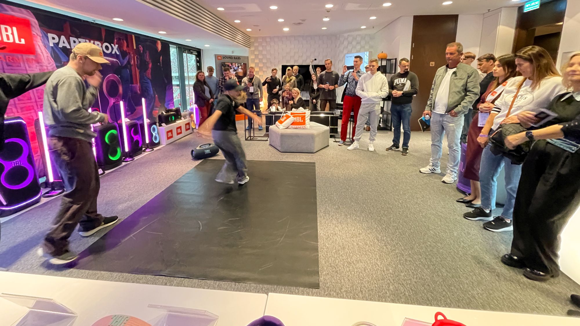 W trakcie imprezy brzmieniom generowanym przez sprzęt JBL towarzyszyły pokazy taneczne, było zatem nie tylko czego posłuchać, ale też można było podziwiać zwinność artystów.