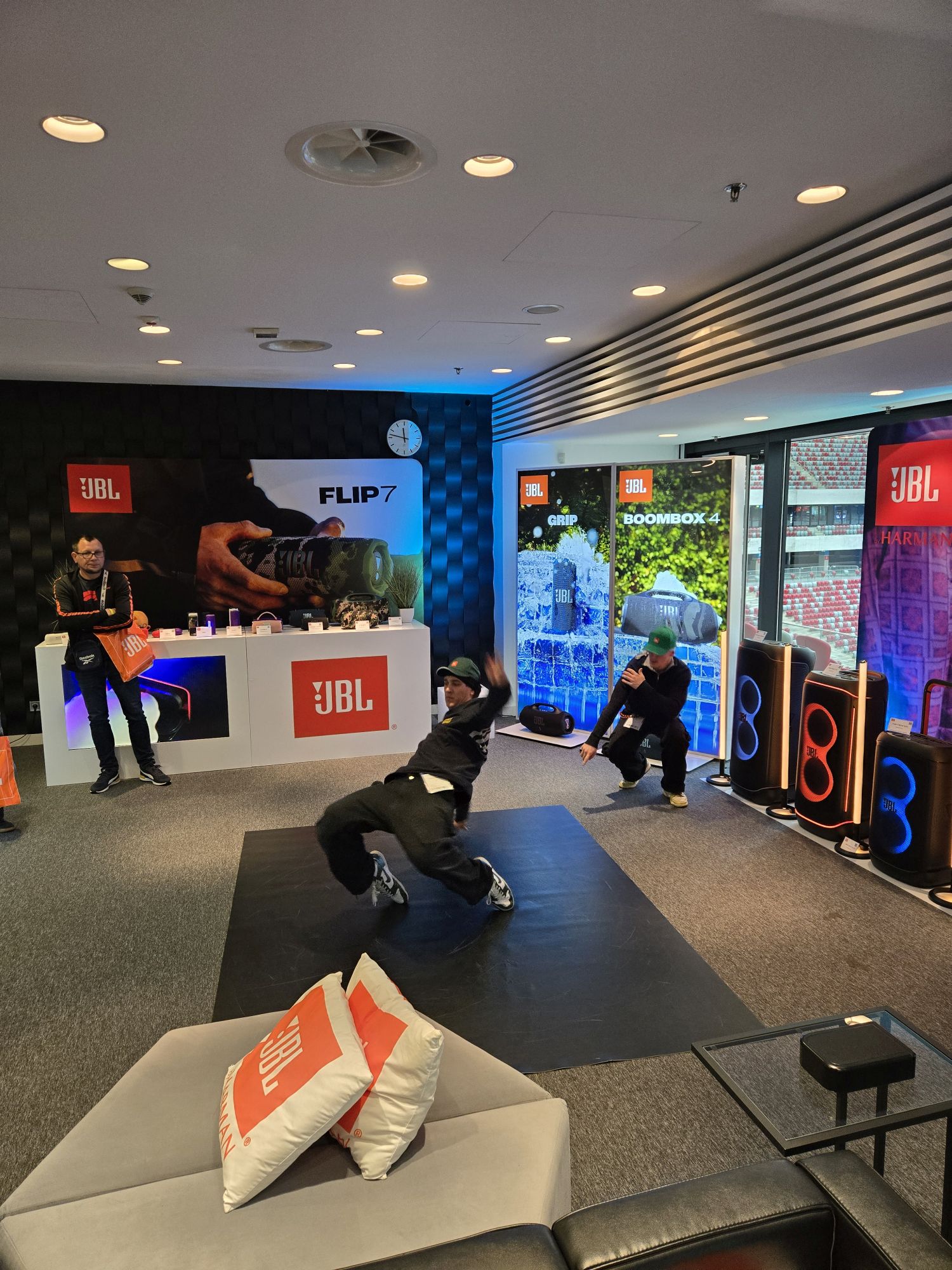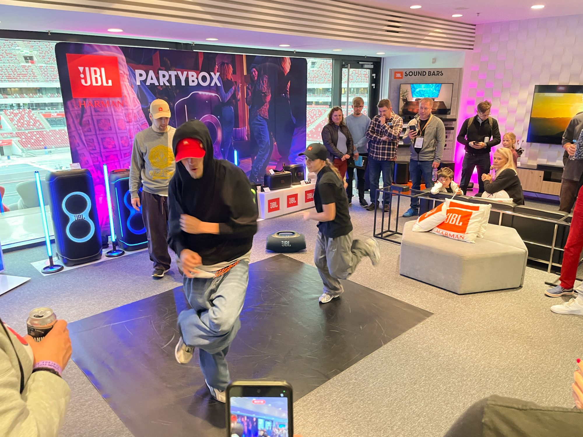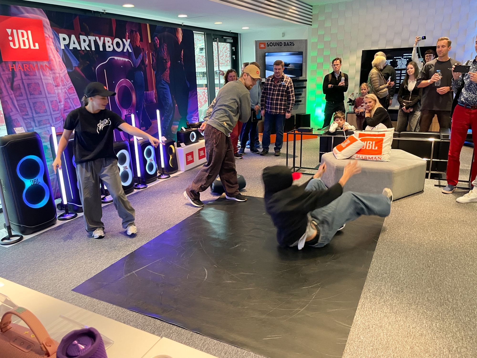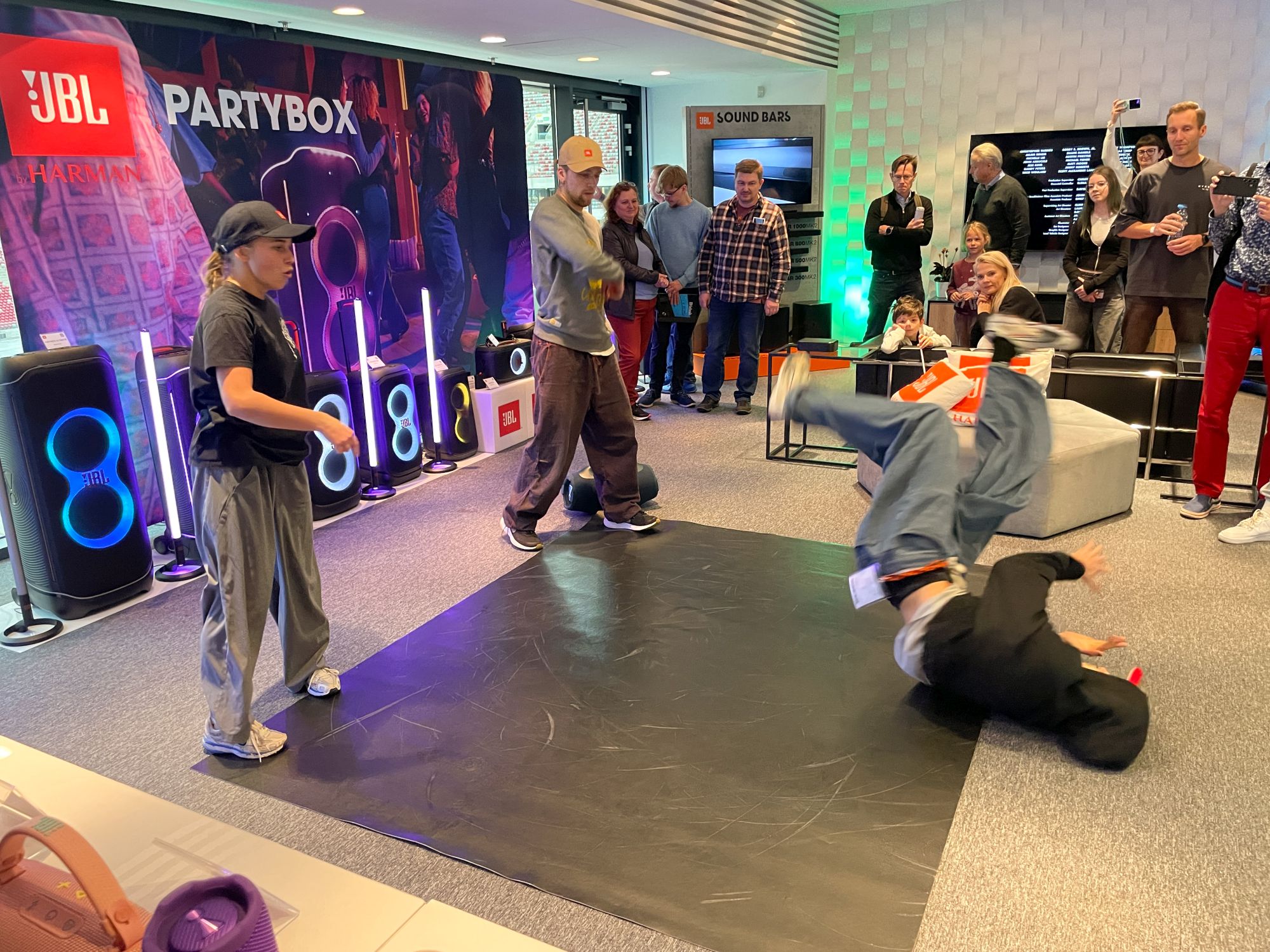 W trakcie imprezy brzmieniom generowanym przez sprzęt JBL towarzyszyły pokazy taneczne, było zatem nie tylko czego posłuchać, ale też można było podziwiać zwinność artystów.