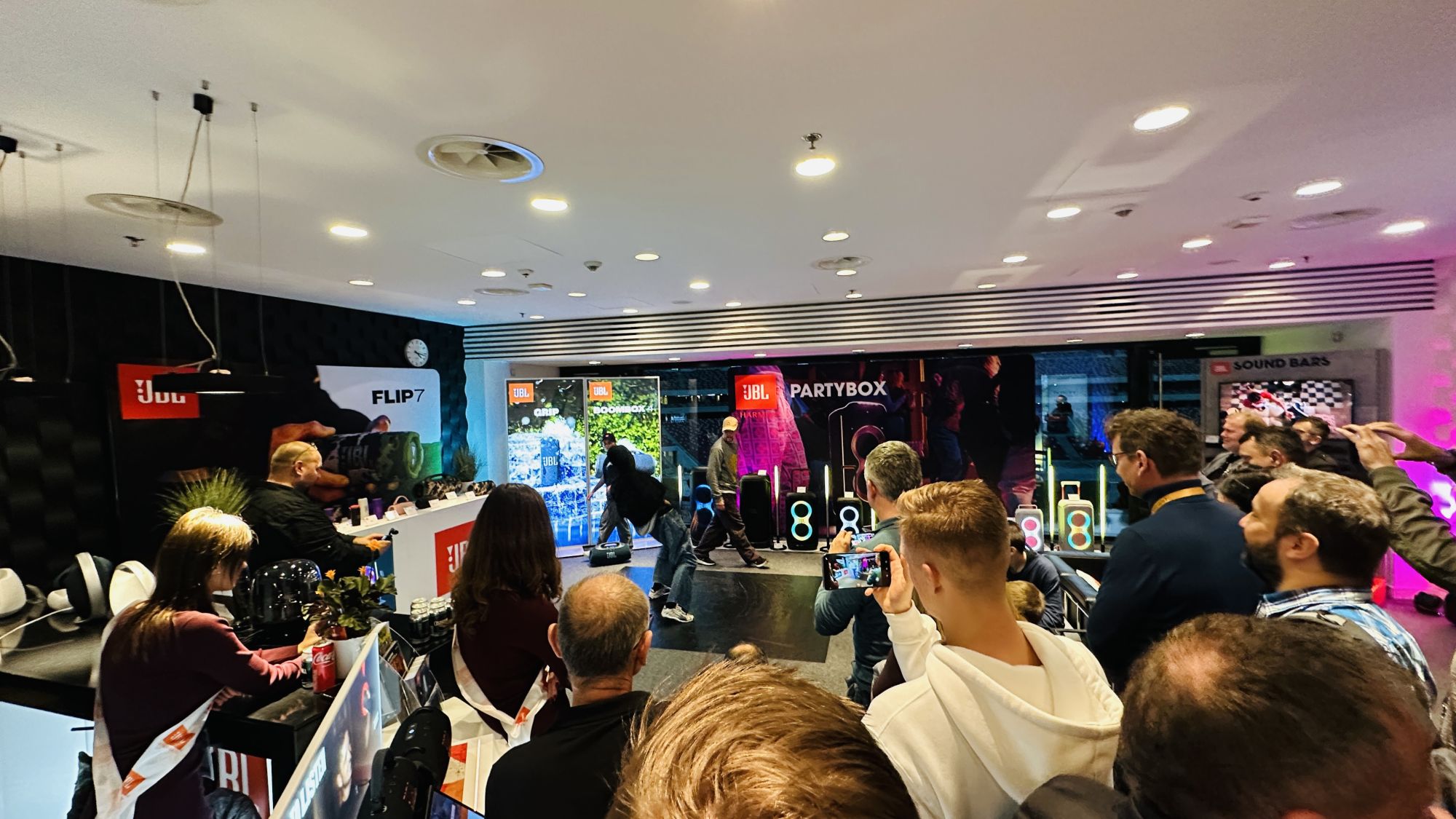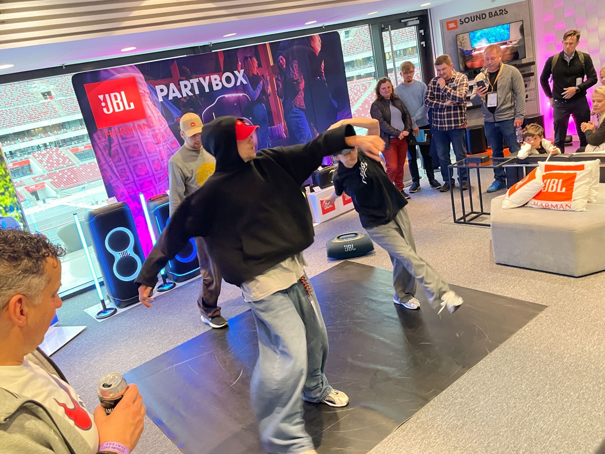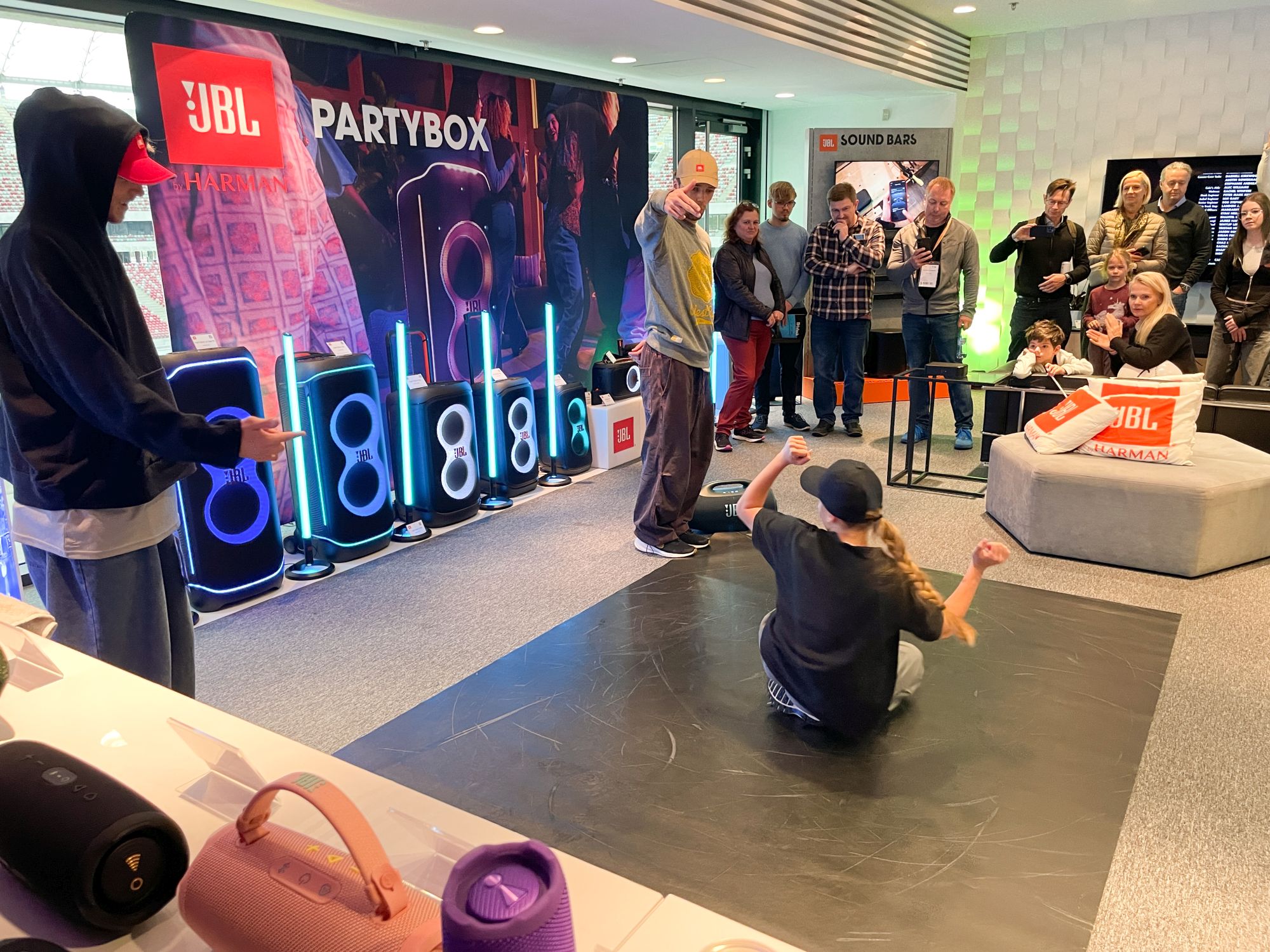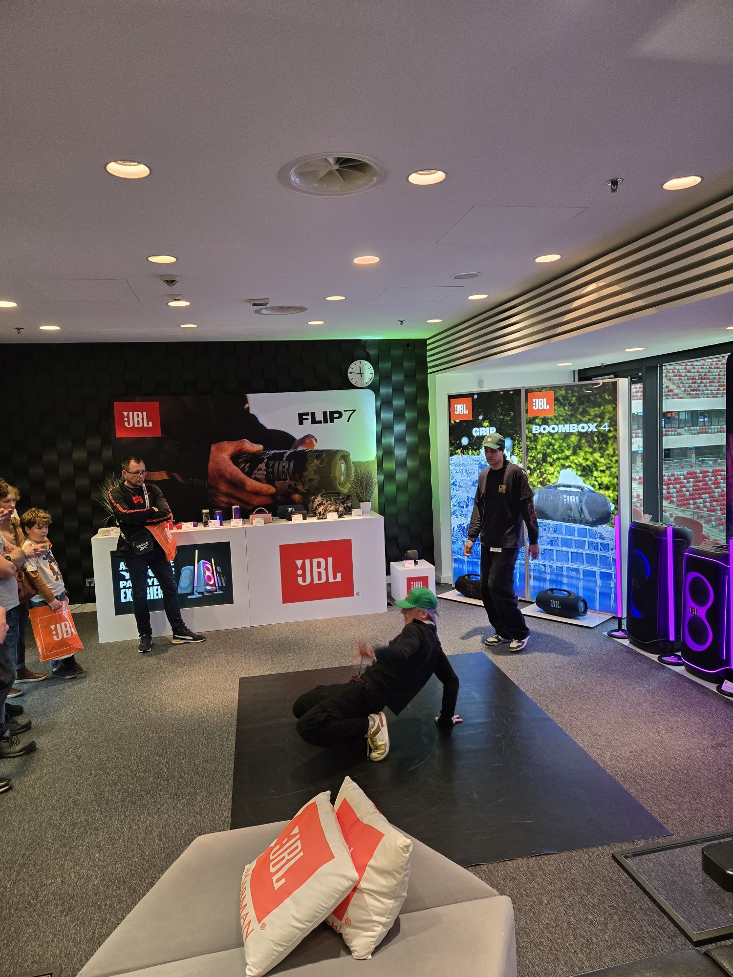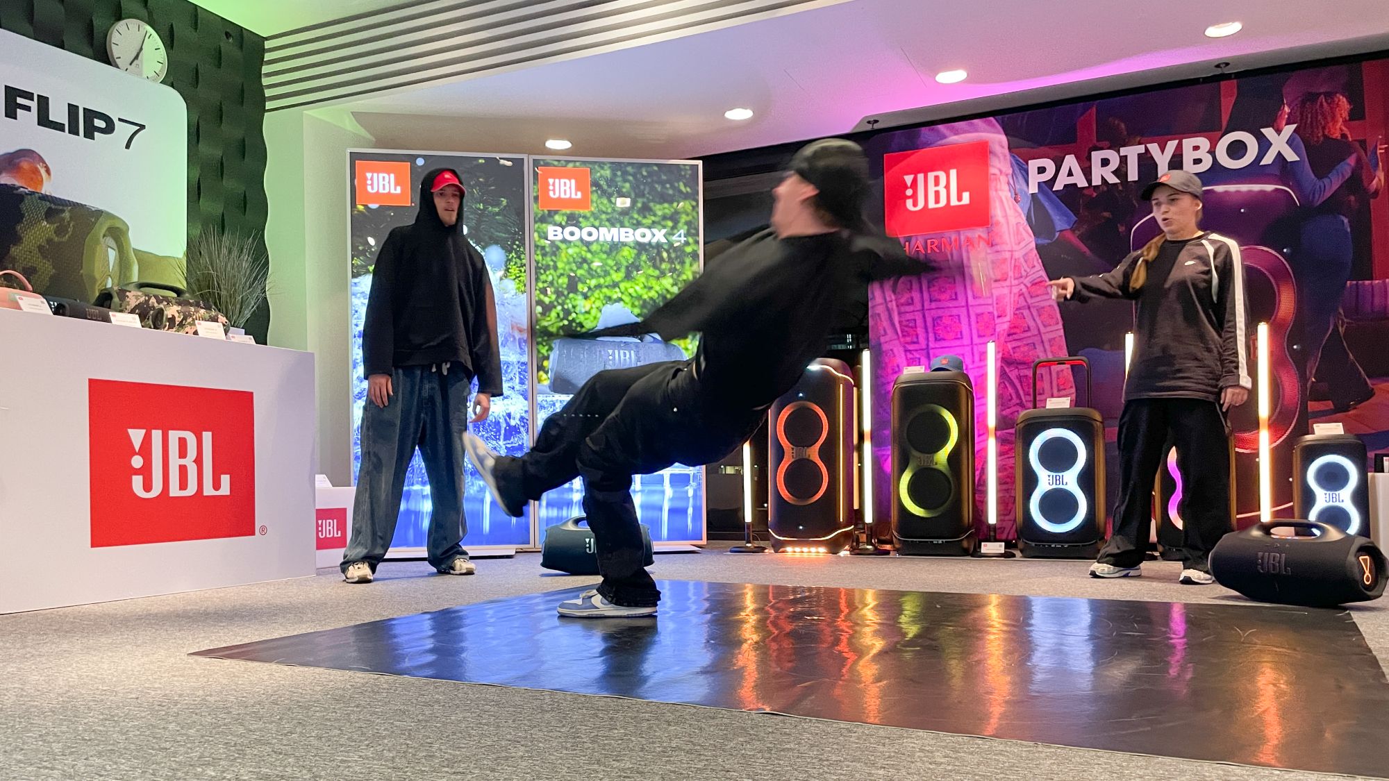 W trakcie imprezy brzmieniom generowanym przez sprzęt JBL towarzyszyły pokazy taneczne, było zatem nie tylko czego posłuchać, ale też można było podziwiać zwinność artystów.