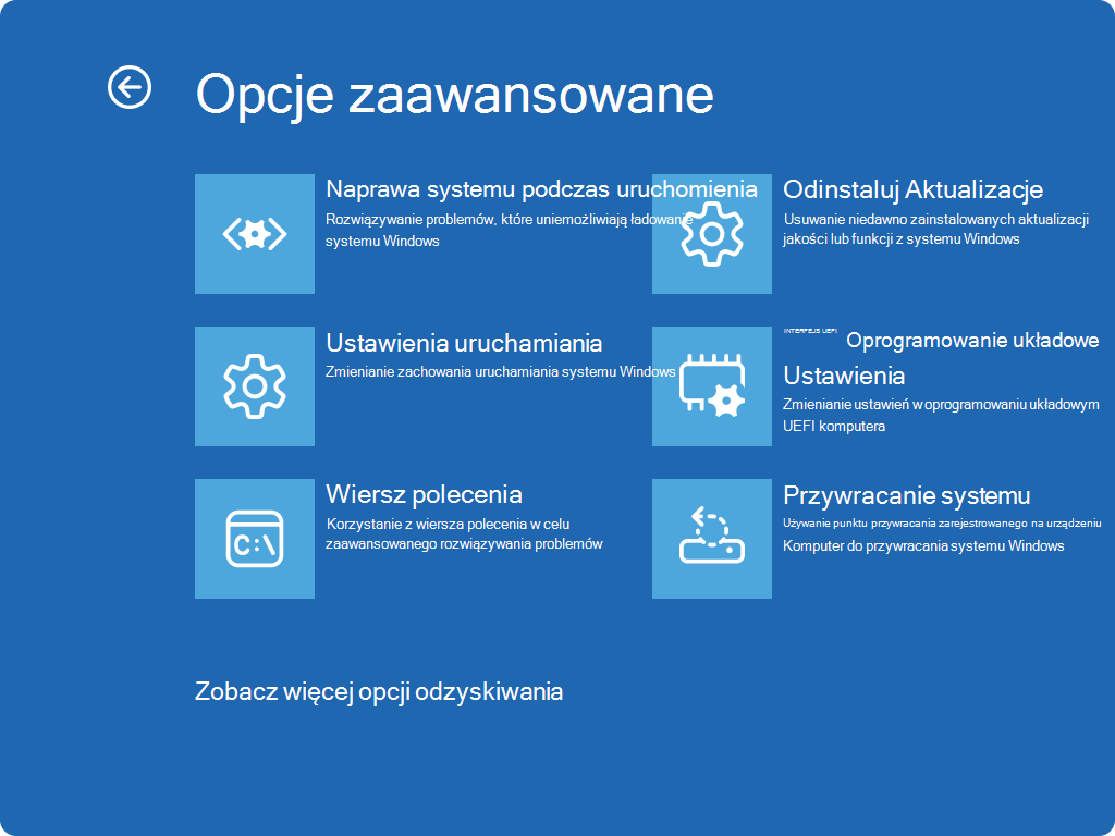 Jednak nie jest to jedyny element wyciągnięty z systemu Windows 8, który wciąż jest dostępny w Windowsie 11. Wystarczy tylko spojrzeć na środowisko odzyskiwania systemu Windows, które pokazuje się w momencie przejścia komputera w tryb automatycznej naprawy (np. po pojawieniu się tzw. niebieskiego ekranu śmierci). Również wyglądem nawiązuje do Windowsa 8 wydanego w 2012 r.