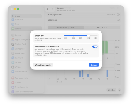 Ustawianie limitu ładowania baterii MacBooka w systemie macOS