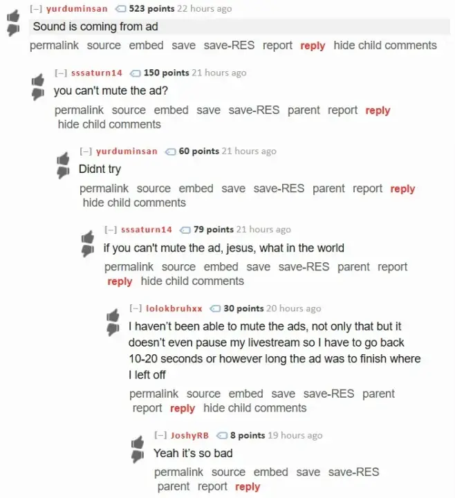 Źródło zdjęcia: Reddit (u/PuffballOfficial12)YouTube najwidoczniej przestał stosować absurdalne spoty, przez które można przegapić bardzo istotny moment streama. Zamiast tego spot wideo pojawia się tuż pod widokiem transmisji, przez co dalej jesteśmy w stanie śledzić poczynania twórcy. Dotychczas byliśmy zmuszeni do oglądania 15 sekund reklamy bez opcji pominięcia.